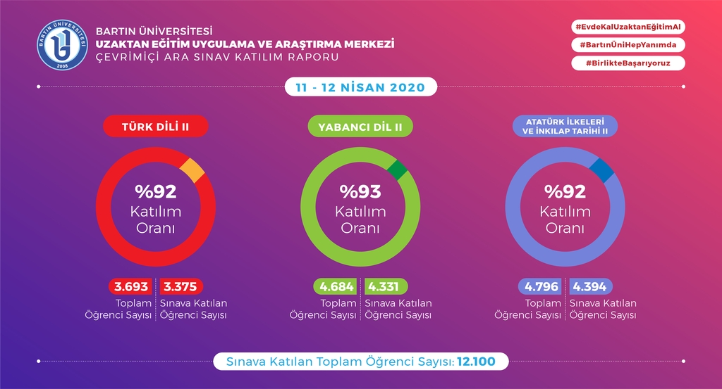 Böylece Türk Dili dersi için yüzde 92, Yabancı Dil dersi için yüzde 93 ve Atatürk İlkeleri ve İnkılap Tarihi dersi için ise yüzde 92 oranında bir katılım sağlandı.